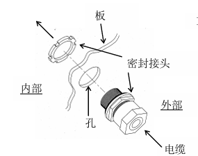 (3)电缆穿入孔后,拧紧密封接头的螺帽。