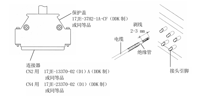 2.拆下 CN2,CN4用连接器的盖,并给通用信号配线。
